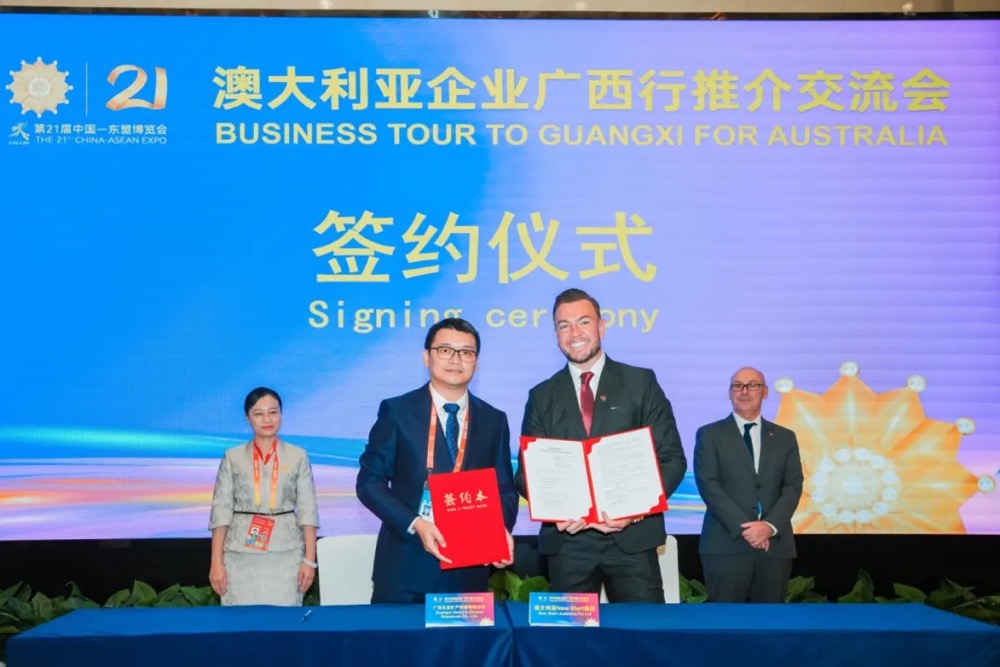 9月24日,在廣西南寧舉辦的第21屆中國—東盟博覽會澳大利亞企業(yè)廣西行推介交流會上,廣西五礦集團(tuán)所屬五礦資源公司與澳洲NEW START集團(tuán)共同簽署鋁錠購銷意向協(xié)議,東博會秘書處秘書長韋朝暉、副秘書長梁藝光、澳大利亞駐廣州總領(lǐng)事康天幕見證簽約儀式。同時(shí)為就協(xié)議及合作事項(xiàng)進(jìn)行深入磋商,雙方于25日召開座談會并達(dá)成系列意向共識。